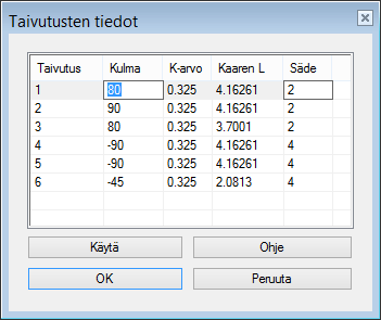 - Taulukon sarakkeet K-arvo ja Kaaren L ovat vain informaatiota, niitä ei voi muokata.