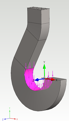 Valitse koukun sisäpinta ja aseta sille kuormaksi -10 kN suuruinen voima Y-suunnassa.