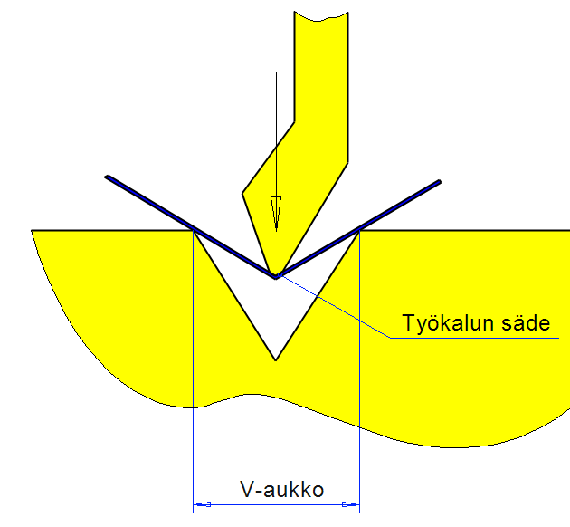 | StainlessSteel | laskee taulukon avulla tasausarvon V. Taulukossa on Ri= Taivutuksen sisäsäde, T1= levyn vahvuus, F1 ????? |
