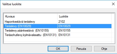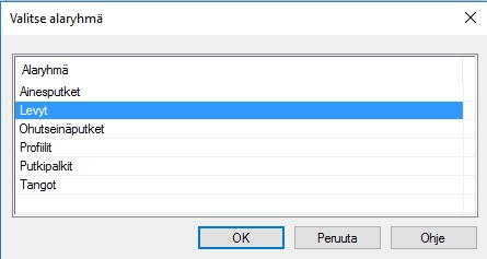 - Valinta tapahtuu joko kaksoisnapsauttamalla oikeaa riviä tai viemällä kohdistin riville ja painamalla Ok-painiketta.
