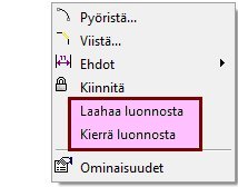 Luonnoksen laahaus ja kierto poistettu tilannekohtaisesta valikosta