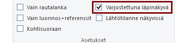 Luonnoksen asetuksella Varjostettuna läpinäkyvä voit valita näytetäänkö osa luonnostelutilassa läpinäkyvänä vai ei. (Vertex ID: MEC-11445)