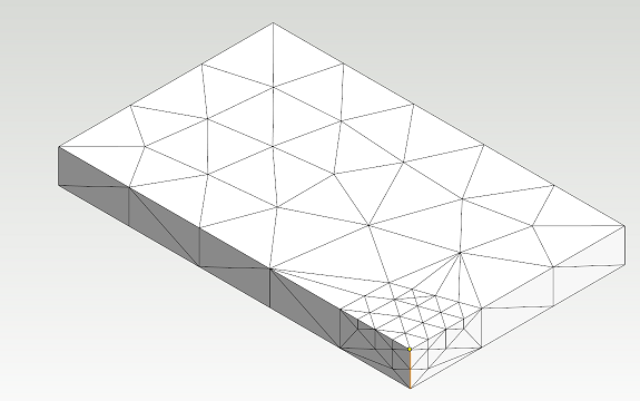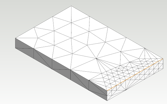 Voit kohdentaa paikallisia tihennyksiä elementtiverkkoon valitun pisteen, särmän, tai pinnan ympärille painamalla Kohdenna, osoittamalla mallista haluttu kohde ja asettamalla elementin särmän tavoitepituus millimetreinä.