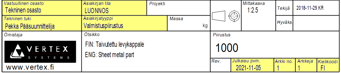 ISO 7200 mukaiset uudistuksen Vertex G4:n piirustusarkistoon.