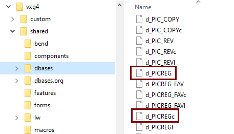 Varmista, ettei teillä ole vxg4(_srv)/shared/dbases-kansiossa alla lueteltuja tiedostoja (jotka joku olisi sinne joskus itse perustanut jotain tarkoitusta varten).
