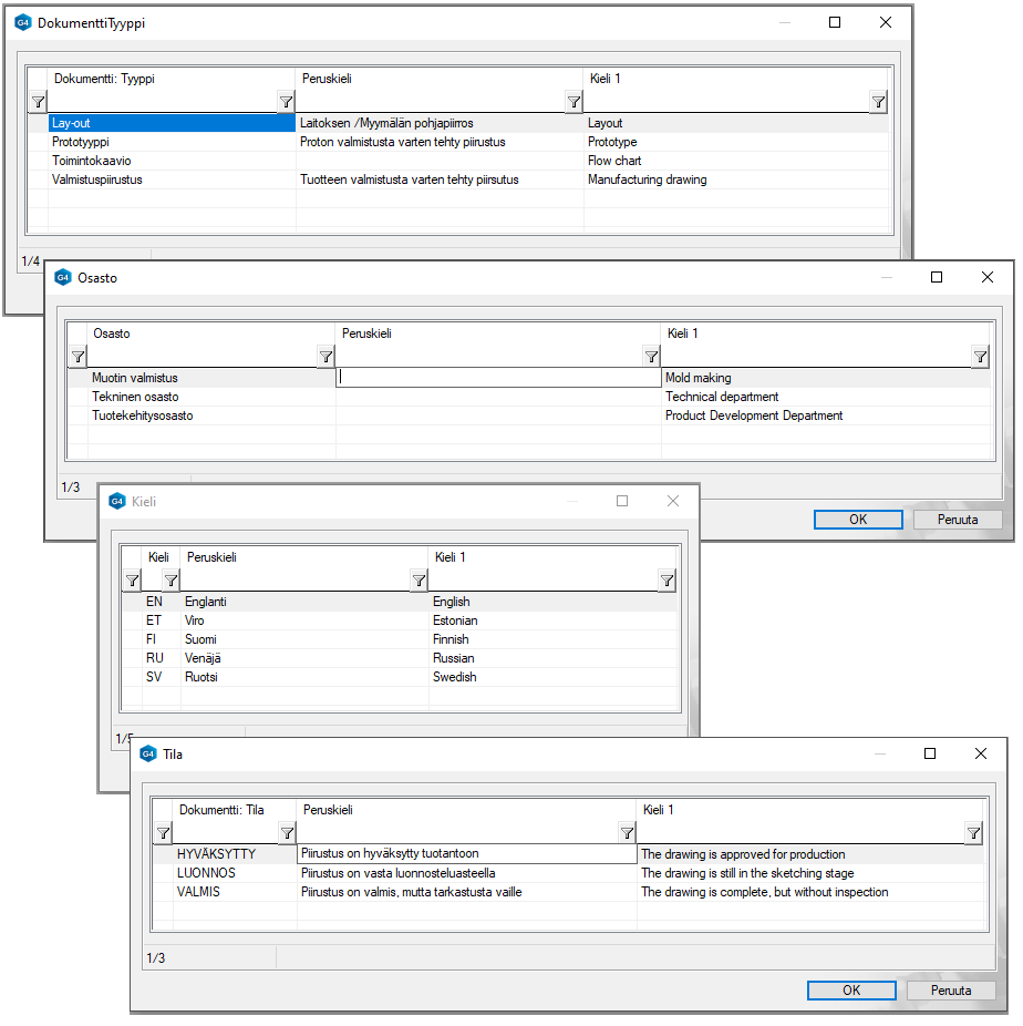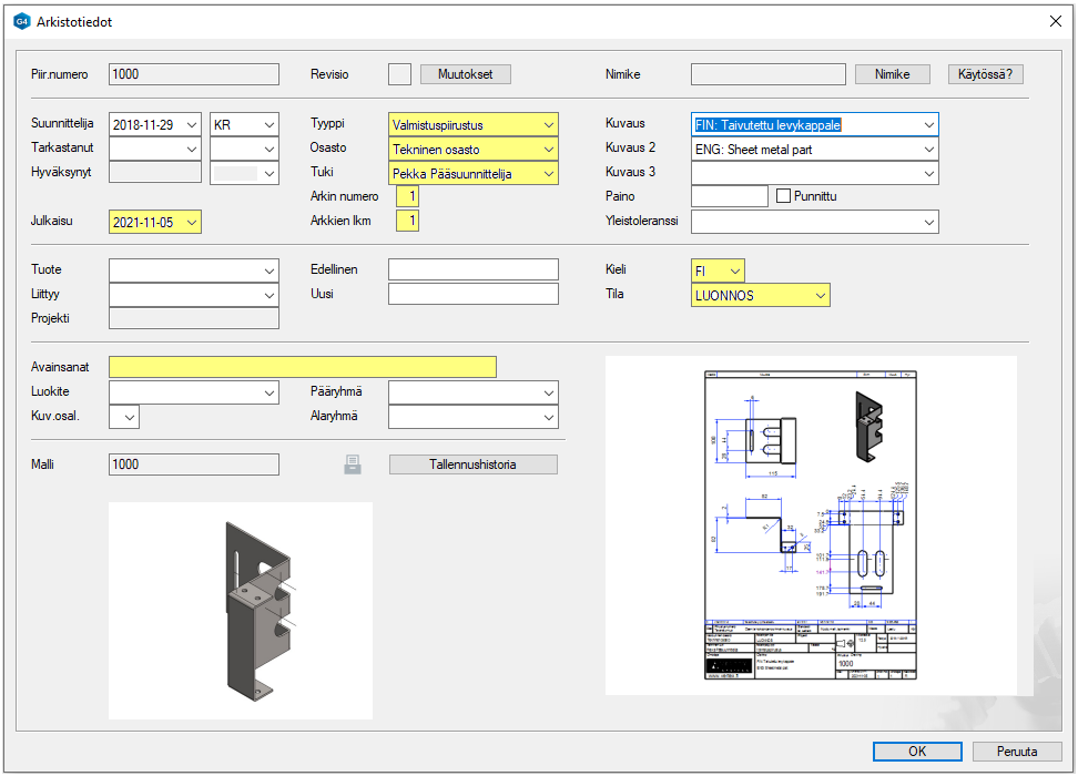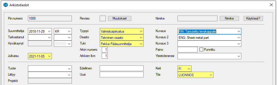 - Kielikoodi (Kertoo piirustuksessa käytetyn kielen)