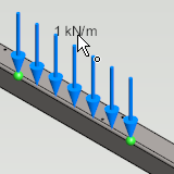 - Valitse solmu, solmuväli tai osa, jolle kuorma määritellään.