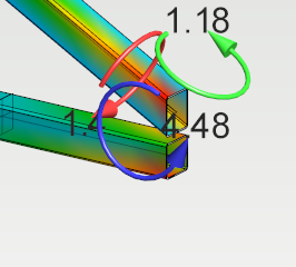 - Voit valita näytettävien tukimomenttikomponenttien koordinaatistoksi osan poikkileikkauksen paikalliskoordinaatiston tai 3d-mallin globaalin koordinaatiston.