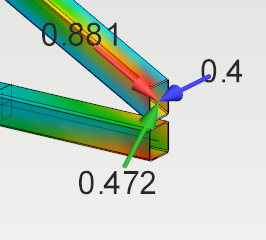 - Voit valita näytettävien tukivoimakomponenttien koordinaatistoksi osan poikkileikkauksen paikalliskoordinaatiston tai 3d-mallin globaalin koordinaatiston.