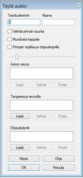 • Oletuksena pinta pyrkii tangeeraamaan kaikkien aukon reunoilla olevien pintojen kanssa.
