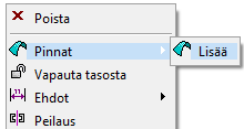 • Valitse sen jälkeen tilannekohtainen toiminto: Pinnat > Lisää.