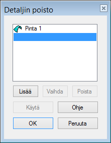 • Voit poistaa piirteitä (pintoja) listalta.