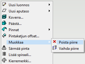 • Voidaan käyttää myös Vertex-mallin piirteiden poistoon, mutta siihen suosittelemme piirteiden poistoa kappaleen piirrehistoriaa käsittelemällä.