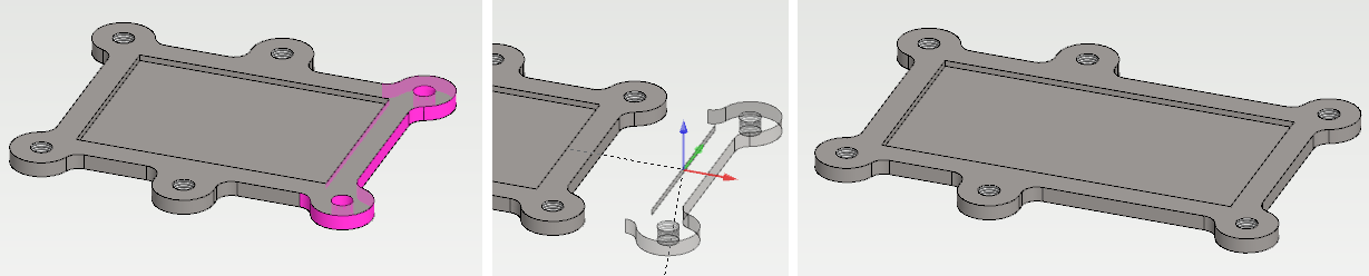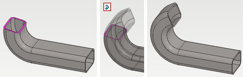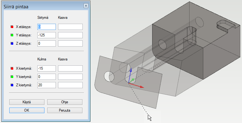 Kappaleen sivupintoja (huom. mukaan täytyy valita kaikki pyöristyspinnat) on siirretty.