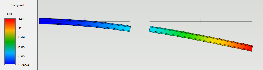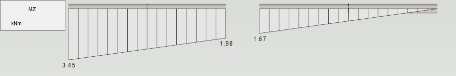Alla olevissa kuvissa on kattoristikon yläpaarteen taivutusmomenttikuvaaja eri kytkentätyypeillä toteutettuna. Kaikki kytkennät on nivelöity ristikon tasossa (kuvan tasossa). Ensimmäisessä kuvassa kaikki ristikon kytkennät ovat rigid link -tyyppisiä ja toisessa kuvassa master-slave -tyyppisiä. Yläpaarteella olevan pääsolmun kohdalle syntyy rigid link -tyyppisiä kytkentöjä käytettäessä porrastus taivutusmomenttikuvaajaan. Tämä johtuu kahden pääsolmuun kytketyn diagonaalin päätysolmun normaalivoimakomponenteista, jotka tuottavat pääsolmuun pistemomentit.