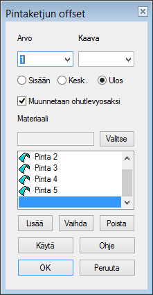 Huomaa, että toiminto Osa > Pinnat > Pintojen offset tekee jonkin verran eri asioita, vaikka pika-kuvake onkin samanlainen.