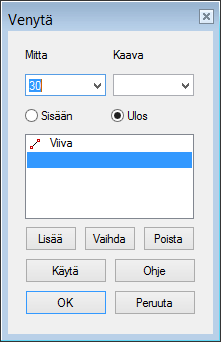Alla venytyksessä on valittu viiva ja kaksi aputasoa.