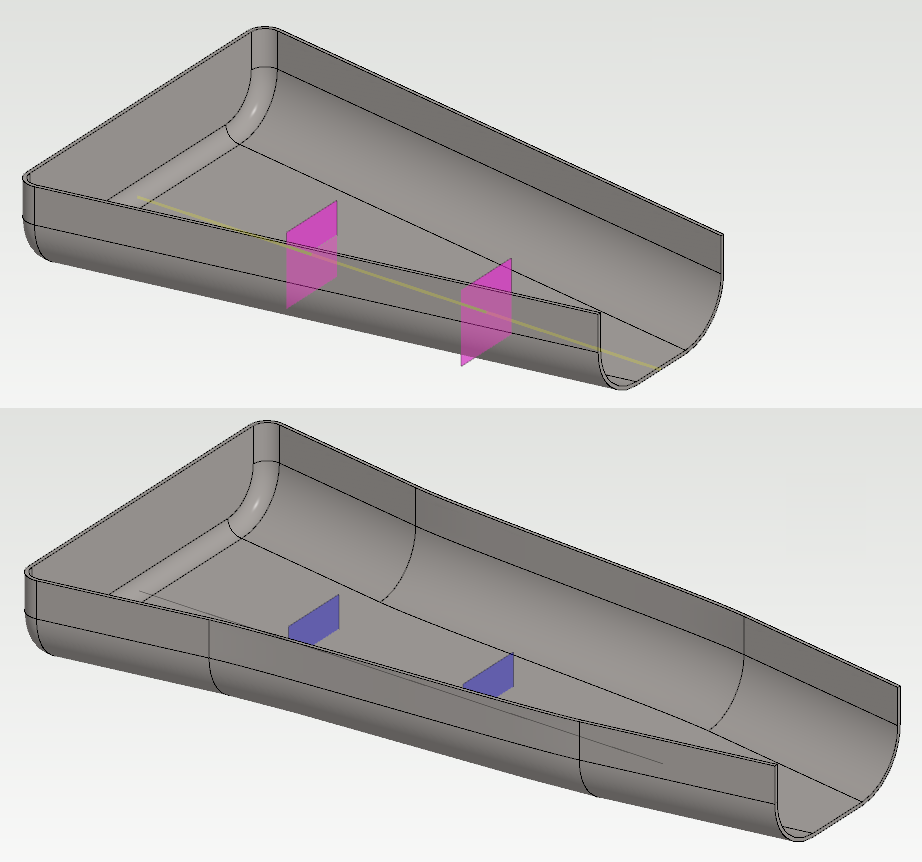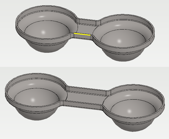 - Jos tällä pintojen paksuuden erolla on merkitystä ja kyseessä on pellistä valmistettava kappale, niin käytä lopuksi toimintoa Pintaketjun offset...