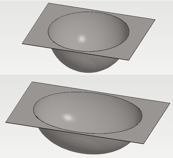 Vasemmalla näkyvän altaan reunapyöristykset kannattaa tehdä vasta venytyksen jälkeen, jotta niistä tulee vakiosäteiset.