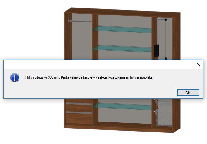 Tehtäessä kalusteelle leveyden muutos tarkistetaan nyt, että yksittäiset jo aiemmin lisätyt osat eivät "veny" mittoihin, jotka eivät ole osille sallittuja.