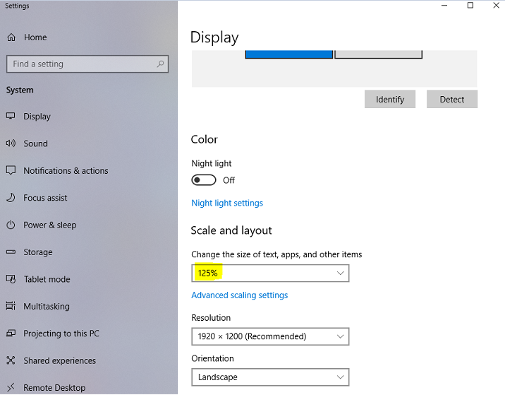 Suuren resoluution näytöllä (4K) on vaihdettu skaalaus esim. 100% Recommended) -> 125%