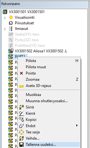 - Avaa kokoonpano muokattavaksi. Valitse osa > Valitse Tallenna uudeksi.