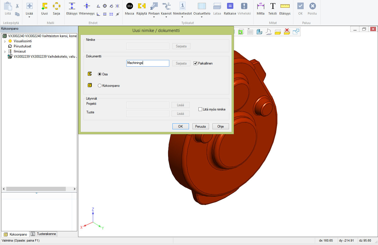 Kuva 5: Koneistavan osan ominaisuuksia.