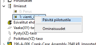 Revisio-kentässä voit valita lähetätkö mallin normaalina mallina (osat ja alikokoonpanot näkyvissä) kevytmallina, joilloin alkujaan kokoonpanomallina olevasta mallista tulee osa ja myös tiedoston koko pienenee.