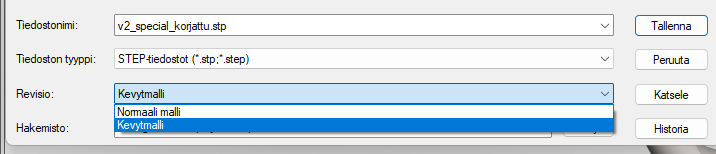 Tallenna tämän jälkeen malli STEP-formaattiin joko normaalina tai kevyenä mallina.