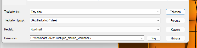 1.Tallenna viallinen malli dae-tiedostoksi