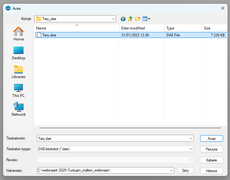 2. Avaa DAE-tiedosto Vertex G4:n puolelle.