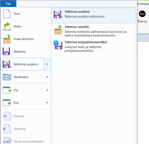 Tallenna malli "Tiedosto - Vie - Tallenna toiseen formaattiin"