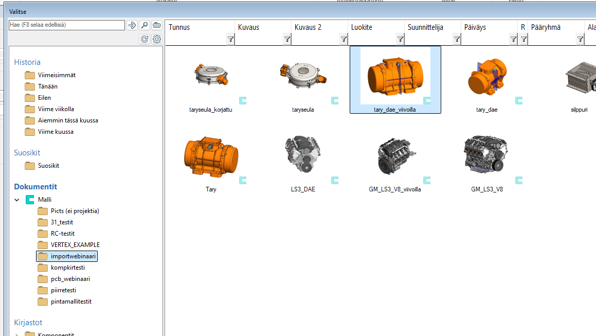Vertex G4-ohjelma ilmoittaa tästä tuotaessa mallia ja muuttaa tuonnin jälkeen mallin nimen punaiseksi. Kun sitten vie ko. mallin esimerkiksi toiseen kokoonpanoon, ilmoittaa ohjelma näistä virheistä ja värjää kokoonpanon nimen myös punaiseksi.