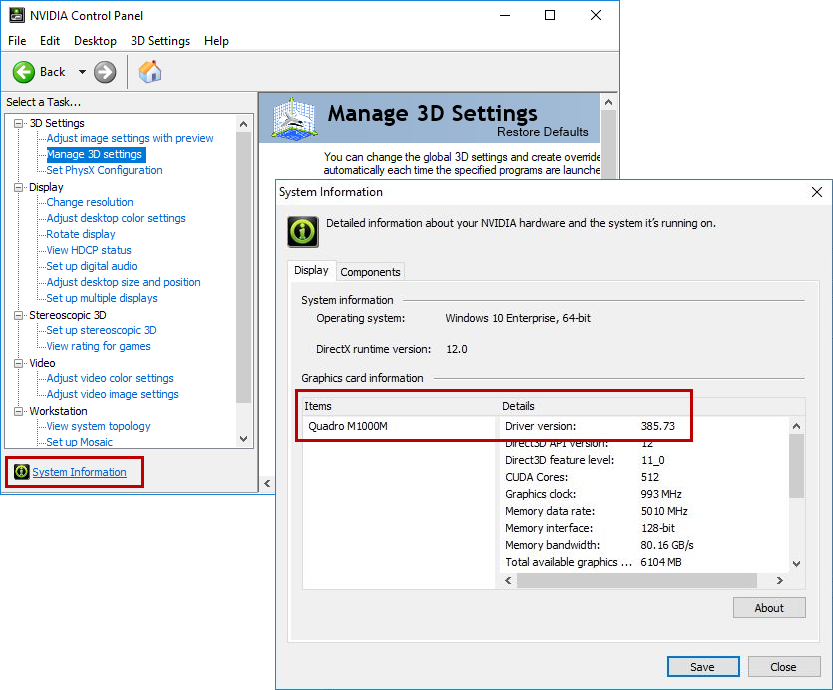 Valitse System Information. Saat näkyviin tiedot näytönohjaimesta ja ajurista.