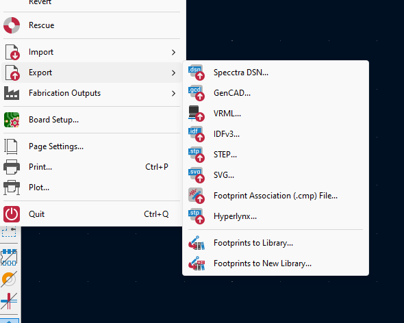 Toiminto löytyy piirilevyn puolelta Export- Step-kohdassa