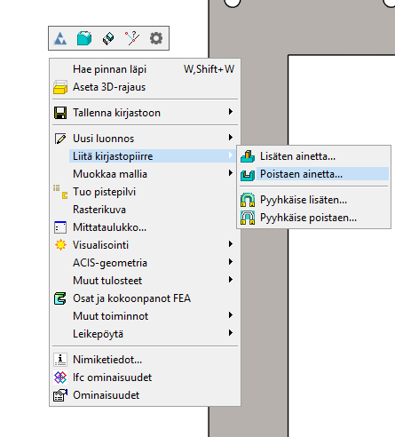 Liitä kirjastopiirre (hiiren oikea) ja “Poistaen ainetta”