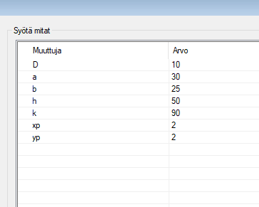 Anna xp ja yp-muuttujille arvoksi 2 mittataulukossa