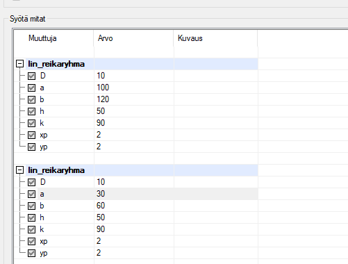 Muuta muuttujien mitat mittataulukkoon toiselle sarjalle