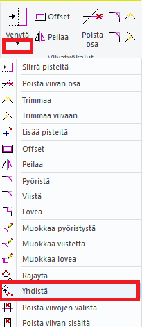 Jos viiva on jo tehty, sen saa muutetuksi yhtenäiseksi toiminnolla "Yhdistä"