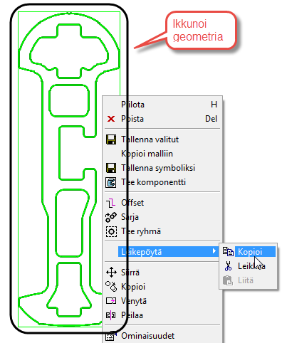 Ikkunoi ja Kopioi koko geometria leikepöydälle. Anna viitepiste haluamastasi kohdasta.