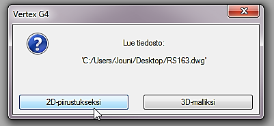 Tuo dwg-kuva G4-ympäristöön raahaamalla työpöytään. Valitse 2D-piirustukseksi.