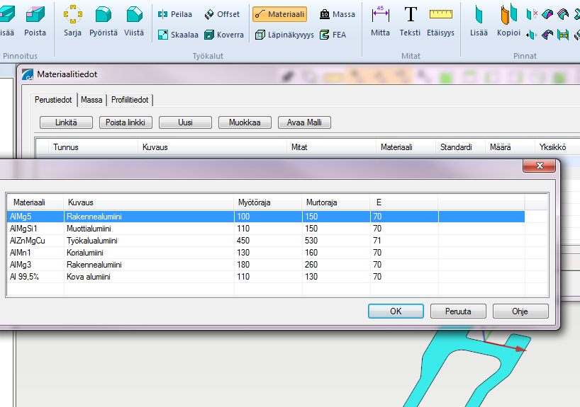 Poikkileikkaus on valmis. Määritä materiaalitiedot (oletuksena on teräksen tiheys ja väri). Voit myös antaa nimiketiedot poikkileikkaukselle.