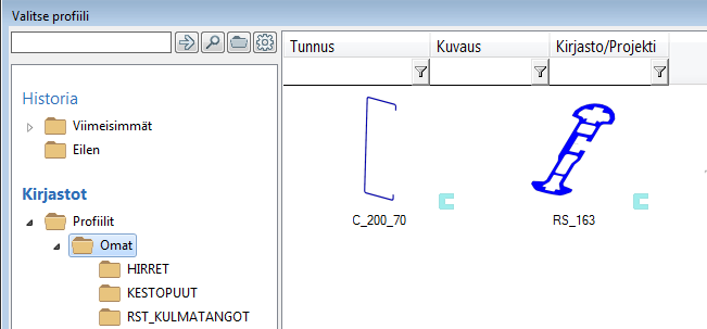 Tallenna osa ja lopuksi Tallenna kirjastoon Profiilina. Voit tehdä profiilille oman kansion. ÄLÄ käytä välilyöntiä kansion nimessä!