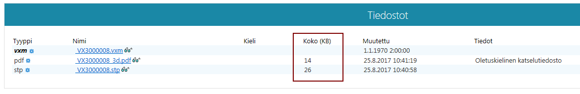 Tilanne, että tiedosto on tallessa Flow -järjestelmässä, mutta linkki dokumenttikorttiin puuttuu. Tällöin Koko -sarake on tyhjä.Tiedostoa voi etsiä Flow -järjestelmästa ja mikäli tiedosto löytyy, sen voi liittää dokumentin metatietoihin. Pahimmassa tapauksessa tiedostoa ei enää löydy Flow -järjestelmästä, vaan se on haettava varmuuskopiomedialta.