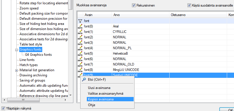 Avainsanat: fontit, piirustus, asetukset, kirjasinlaji
