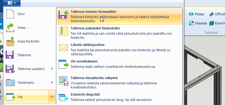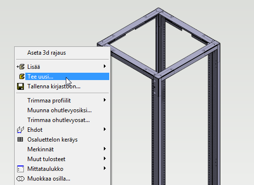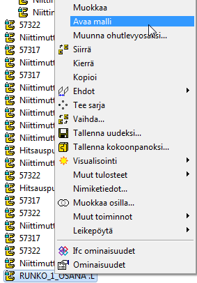 Valitse tilannekohtainen toiminto: Muokkaa osilla.
