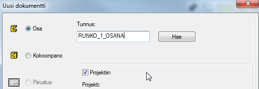 Anna Uuden dokumentin tunnukset. Osa voi olla myös paikallinen.