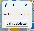 Ohjelma pyytää käyttäjää hakemaan .xml-tiedoston jostain kansiosta