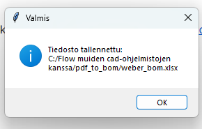 Ohessa Python-ohjelma, jolla saa yhdisteltyä 3d pdf-tiedoston rakenteen nimikketiedot Vertex Flow’n siirtotiedoston pohjaan pdf_rakenteen_kopiointi_excelista_toiseen.zip