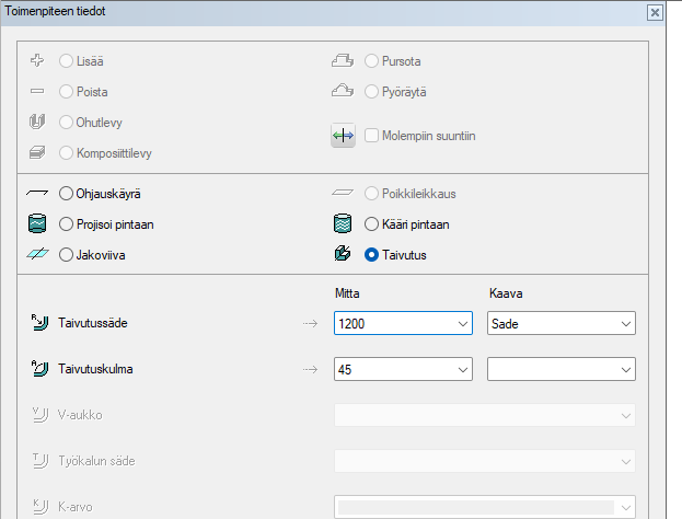 Taivutetaan levy säteeseen 1200 mm ohjauskäyrän avulla